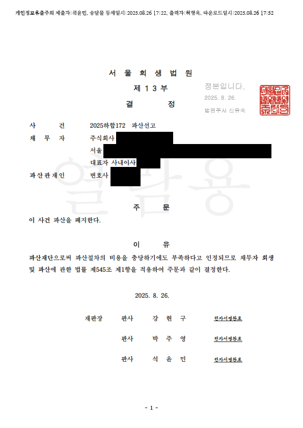 ¹ýÀÎÆÄ»ê ÀÌ½ÃÆÄ»êÆóÁö°áÁ¤ (¼¿ïȸ»ý¹ý¿ø)