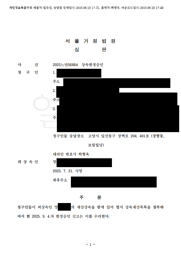 »ó¼ÓÇÑÁ¤½ÂÀÎ ½ÉÆÇû±¸ Àοë°áÁ¤ (¼¿ï°¡Á¤¹ý¿ø)