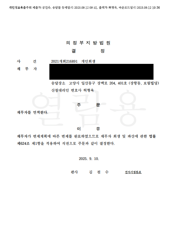 °³ÀÎȸ»ý º¯Á¦¿Ï·á ¸éÃ¥°áÁ¤ (ÀÇÁ¤ºÎÁö¹æ¹ý¿ø)